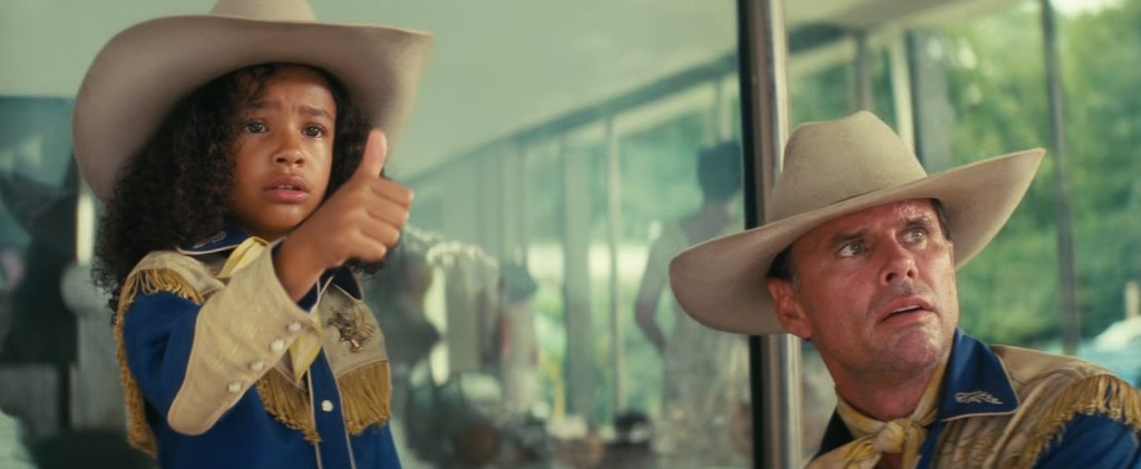 There is a bold irony in the Fallout television adaptation being produced by Amazon, a mega-corporation with a lot in common with some of the corporations lambasted within the series for being maniacal controlling monsters. The show narrative calculates the arc-trajectory of such megacorps’ schemes as they strive to dominate the future, and where their efforts land to explosive effect for humanity. Fallout also points out that the Pip-Boy, the signature wrist-screen vault-dweller’s wear, is intrusive tech, which, much like some of Amazon’s flagship products, steals our privacy and links us willy-nilly to the whims of faceless authority. Thus, the main line of interest I’d like to pursue is the seeming confluences of where the writers of Fallout are speaking to the state of capitalism itself, the entertainment industry specifically, and the conflict of art versus product. How far into the shift from art to “content” are we that Amazon’s contextual hold over this narrative isn’t a larger issue for viewers? Or maybe… that’s exactly why Fallout is such a hit– such a “break-through” and breath of fresh air. I want to suggest the cheers of the online audience and the appreciations of respect paid to the material (while creating something new!) are like a thumbs up to the lone writer(s) in the distance somewhere hidden within the Amazon machine, just generally trying to see what the howling wind might tell us.